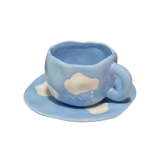 יפני קטן טרי יד צבוע כחול שמיים לבן ענן קפה כוס צלוחית יד כף סדיר ספל